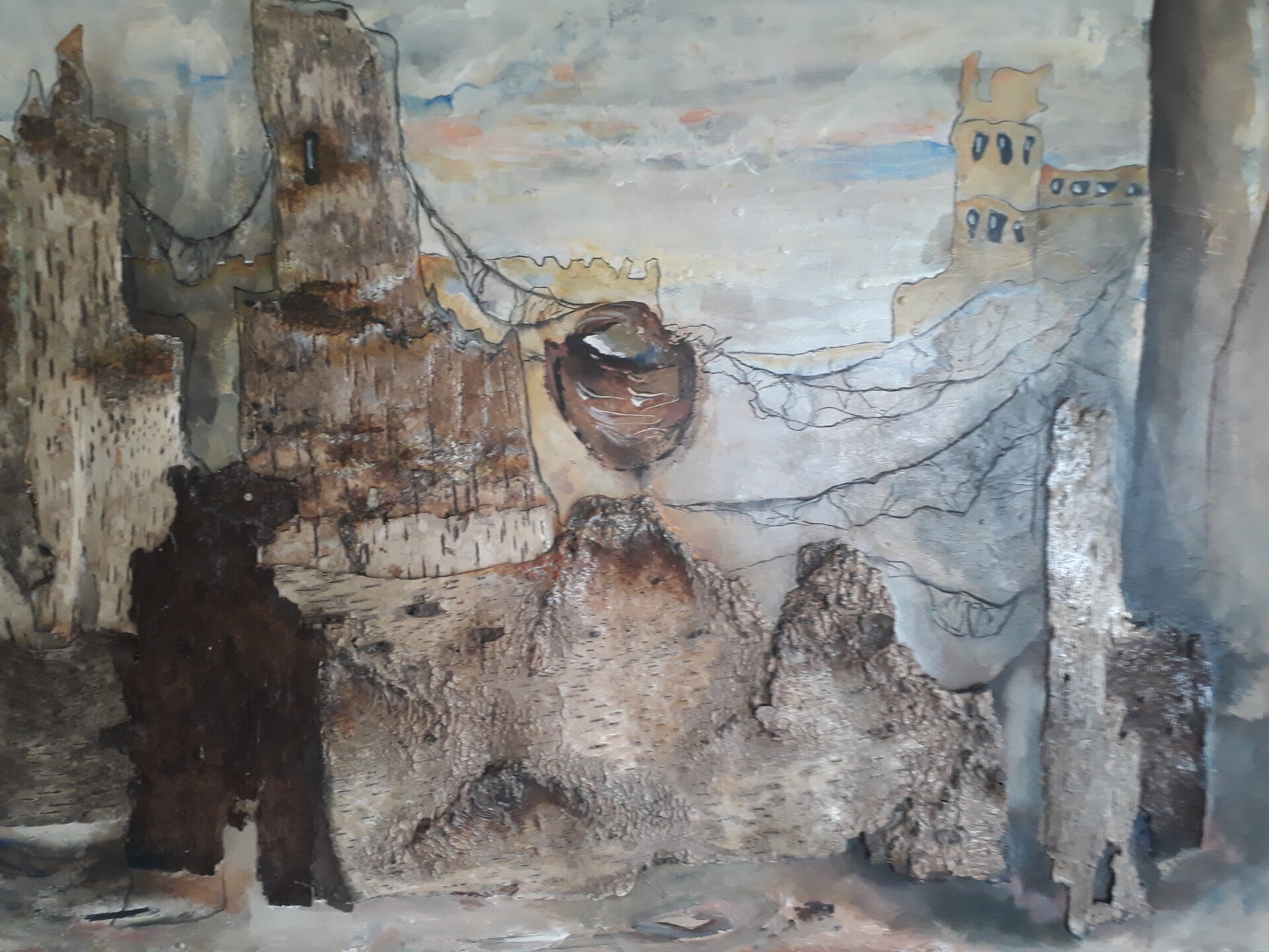 acryl en schors op paneel
